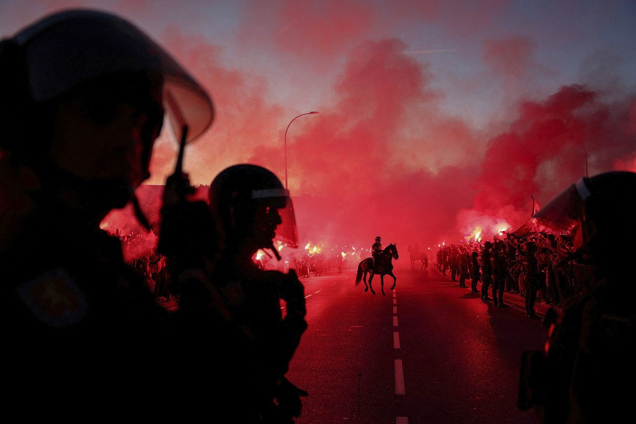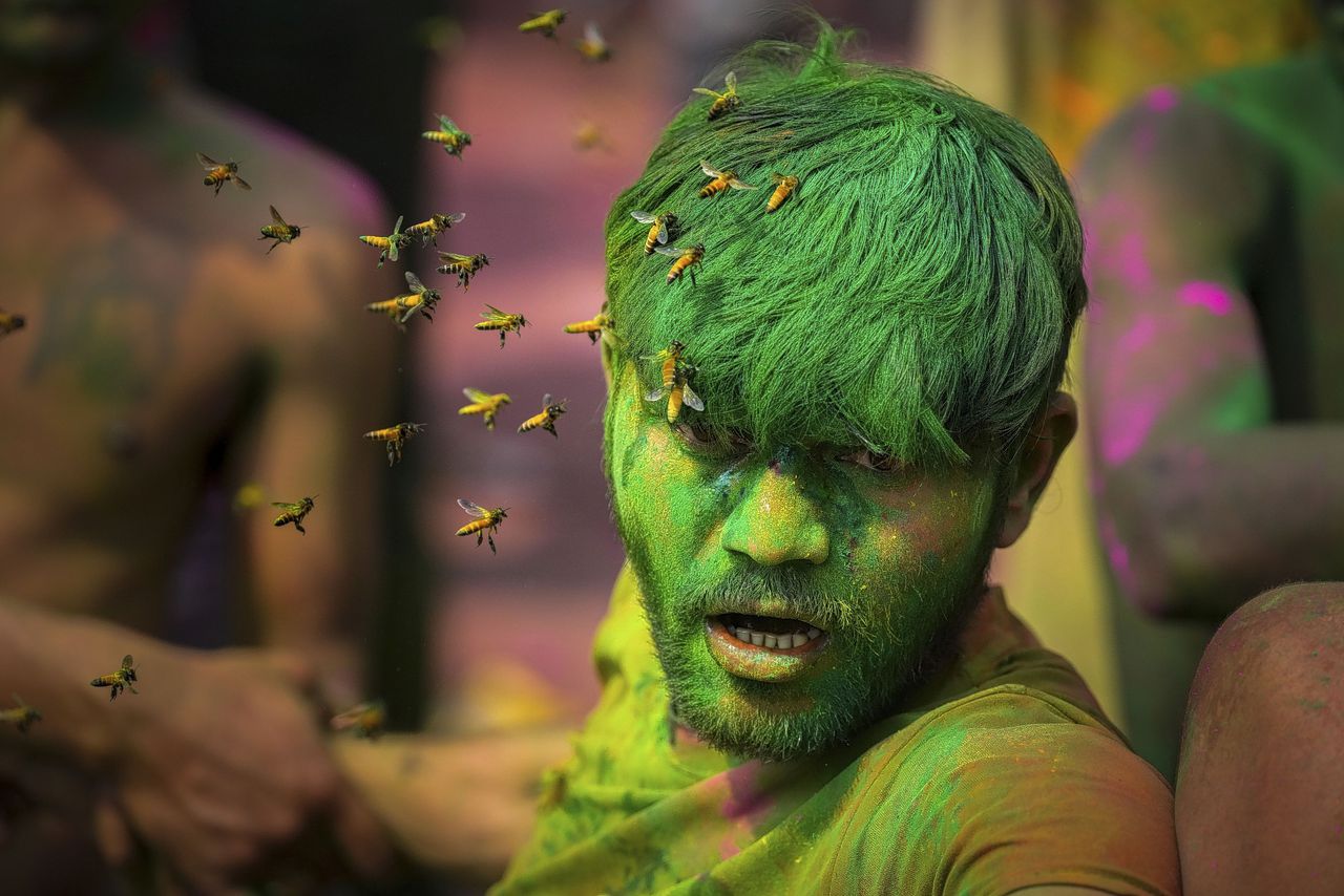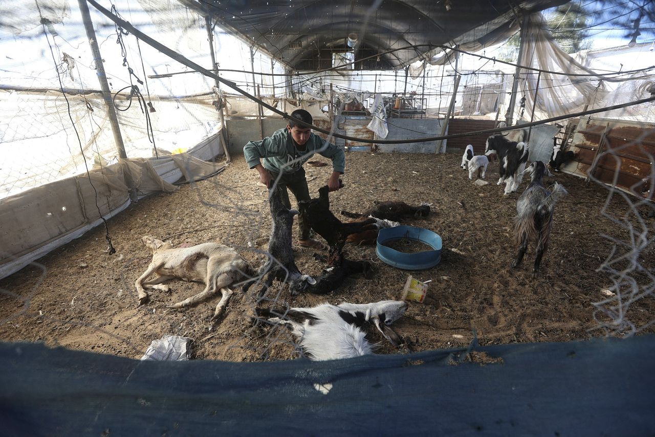 Dit is Atlas, in januari in de buurt van het Franse Dijon. Hij heeft er net een reis van vier dagen opzitten: hij is samen met zijn vrouwelijke soortgenoten Luladja en Queen door dierenbeschermers uit Oekraïne gehaald. Atlas, bijna drie jaar oud, verbleef in de buurt van Kyiv bij een particuliere eigenaar waar hij agressief gedrag begon te vertonen. Dat gedrag was waarschijnlijk het gevolg van de bombardementen in Oekraïne, denkt het International Fund for Animal Welfare (IFAW): „Atlas, Luladja en Queen zijn de onverwachte slachtoffers van oorlog. Deze leeuwen werden onder slechte omstandigheden gehouden in een land dat door oorlog wordt geteisterd”, zei het IFAW toen de leeuwen waren gearriveerd in een Frans dierenpark.Foto Arnaud Finistre / AFPEen vrijwilliger van een Libanese dierenbeschermingsorganisatie met twee jonge katjes, in oktober. De beestjes zijn gered uit de puinhopen van een ingestort gebouw na een Iraëlische luchtaanval op Beiroet. Foto Bilal Hussein / APIn de stad Khan Younis, in het zuiden van Gaza, worden dode dieren weggehaald uit een dierenverblijf in maart. De regio rond Khan Younis was dit jaar regelmatig doelwit van luchtaanvallen van het Israëlische leger.Foto Ahmed Zakot / ReutersArkades, een Duitse herder, viert zijn eerste verjaardag in Mexico, bij het Mexicaanse leger. Arkades was een geschenk van Turkije aan Mexico, na de dood van Proteo. Dat was een reddingshond die om het leven was gekomen bij de reddingswerkzaamheden na de grote aarbeving in Turkije en Syrië in 2023. De verjaardag van Arkades werd gevierd met een lied en taart en er waren tientallen honden voor het feestje uitgenodigd. Foto Isaac Esquivel / EPAEen Spaans politiepaard in Madrid voor aanvang van Atletico Madrid-Inter Milaan, een voetbalwedstrijd in de Champions League, in maart.Foto Violeta Santos / ReutersDe Deense koninklijke militarie garde staat in Kopenhagen bij de Livgardenskazerne klaar voor de wisseling van de wacht, in juni. Niet op de foto: koning Frederik X, die de wacht afneemt, wel op de foto: drie ganzen die overvliegen. Foto Ida Marie Odgaard / EPAPapegaaien in het oosten van Bolivia vliegen door de rook, na de bosbranden die er woedden in september.Foto Ipa Ibanez / ReutersHier rent waarschijnlijk een vos over een veld tijdens een bosbrand in het Amerikaanse Californië, in juli.Foto Noah Berger / APVoor de kust van Kaapstad in Zuid-Afrika wordt een overleden bultrugwalvis weggesleept door de het Natioal Sea Rescue Institute, in november.Foto Nic Bothma / ReutersIn Rio de Janeiro werd deze reiger gespot, met een plastic drinkbeker in haar hals. Het beeld van de reiger, deze maand, leidde tot veel reacties in Brazilië, en de discussie over plasticvervuiling in de natuur laaide op. De drinkbeker was voor de reiger levensbedreigend, volgens dierenartsen kon de reiger niet meer eten of drinken en zou ze binnen een paar dagen overlijden. De reiger is geopereerd, waarbij het is gelukt de drinkbeker te verwijderen. „Hopelijk vindt ze geen plastic drinkbekers meer onderweg”, zei de dierenarts toen de reiger weer werd vrijgelaten. Foto Ricardo Moraes / ReutersRangers in Kenia halen een zwarte neushoorn uit het water in het Nairobi National Park. De Kenya Wildlife Service begon in januari met het verhuizen van 21 ernstig bedreigde neushoorns naar een nieuw onderkomen, honderden kilometers verderop. Foto Brian Inganga / APEen zwerm bijen vliegt rond het hoofd van een man die deelneemt aan het Holi-festival, het Hindoestaanse ‘kleurenfeest’ in Guwahati, India, in maart. De man op de foto is volgens de fotograaf dronken, maar dat heeft NRC niet kunnen verifiëren.Foto Anupam Nath / APEen koe zit vast in de drooggevallen bedding van een drooggevallen rivier in het noorden van Mexico, in augustus.Foto Jose Luis Gonzalez / ReutersEen zee van dode vissen, in de Vietnamese provincie Dong Nai, eind april. De vissen zijn gestorven door de aanhoudende hitte; Zuid- en Zuidoost-Azië kampten in het voorjaar met een wekenlange hittegolf.Foto AFPEen olifant wordt door hulpverleners en vrijwilligers in een Thais olifantenpark in veiligheid gebracht. Het park werd in oktober verrast door een plotselinge overstroming, verschillende olifanten moesten in veiligheid worden gebracht.Foto Pongmanat Tasiri/ Getty ImagesEen pasgeboren schubdiertje in de dierentuin van Praag, in Tsjechië, wordt gewogen, vlak na haar geboorte in juli.Foto Martin Divisek / EPADeze makaken zitten in een kooi, in de Thaise stad Lop Buri. Er lopen en springen zó veel makaken rond in de stad, dat het stadsbestuur zich genoodzaakt zag de dieren op te gaan sluiten. Sinds mei zijn al meer dan 1.500 makaken gevangengenomen. De dieren worden gesteriliseerd en in gevangenschap gehouden.
